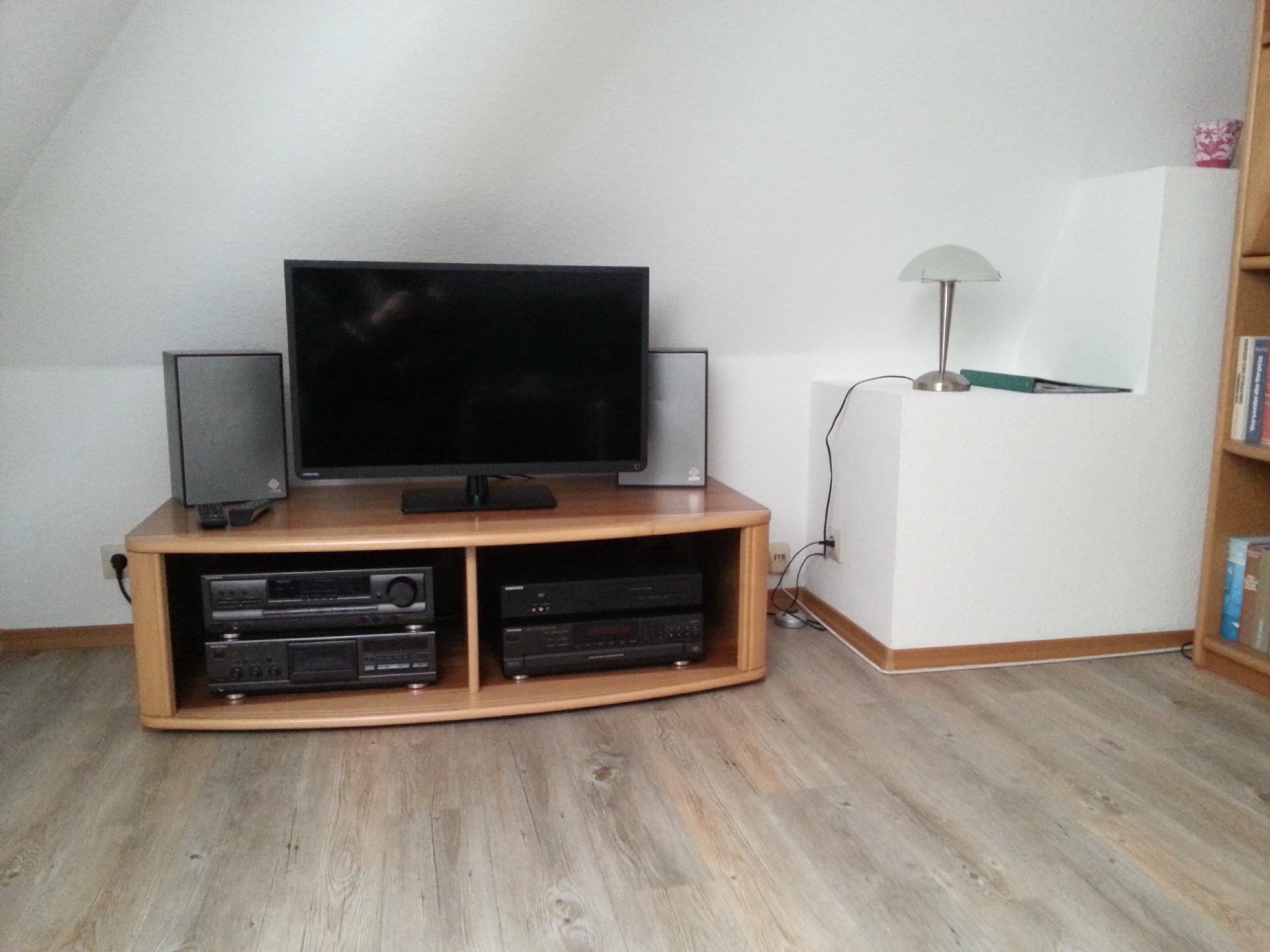 Die Bilder werden aktuell umgestellt, da sich die Wohnungsausstattung teilweise leicht verändert hat und im Rahmen der Dachsanierung neue, weiße Fenster eingebaut wurden. Fotos mit schwarzen Möbeln und braunen Fenstern sind nicht aktuell.
